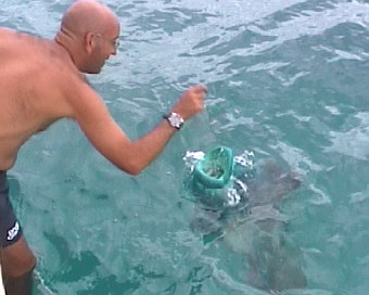 Und das gab's auch: Crew-Mitglied Timmy füttert einen rund einen Metern