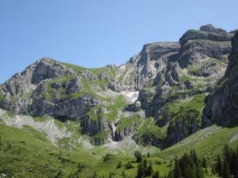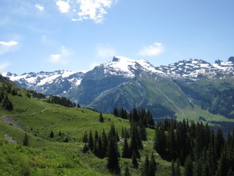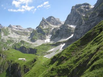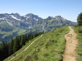 an – wie hier in der Ferne die Alpwirtschaft Oberfeld.
